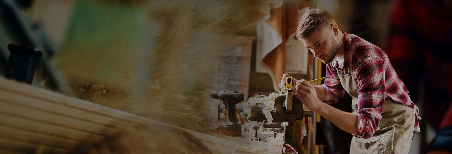Islington Carpentry & Joinery – craftsman measuring timber with tape and pencil for bespoke woodwork